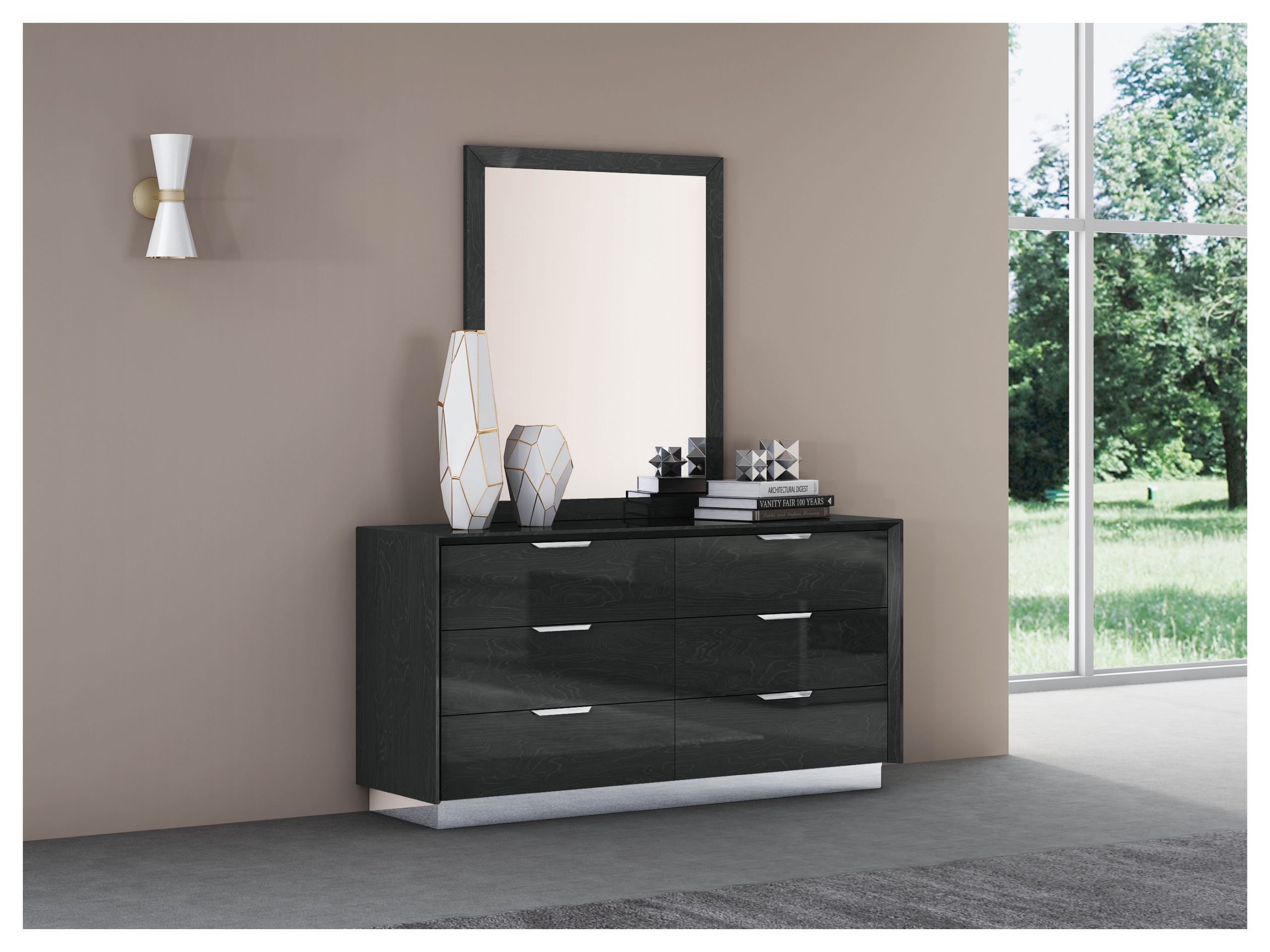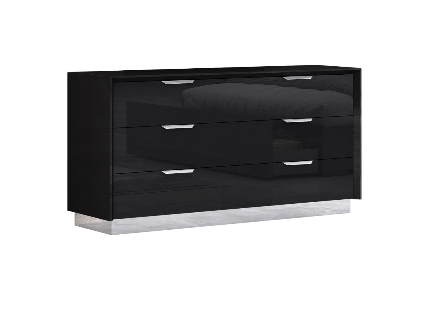 Navi Double Dresser, comes in high gloss white or high gloss gray with stainless steel trim, six drawers with self-close runners and stainless steel handles.