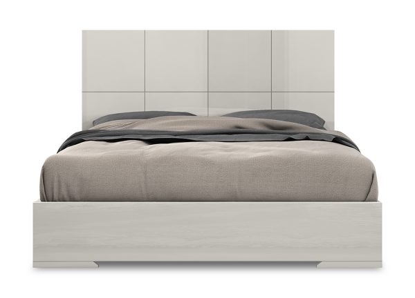 Anna Bed Queen, Available in High Gloss Light Grey, Headboard with Squares Design.