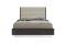 Pino Bed Queen, in High Gloss Dark Grey Lacquer, Headboard with Upholstered Panels in Light Grey Faux Leather, Base in Polished Silver Stainless Steel.l