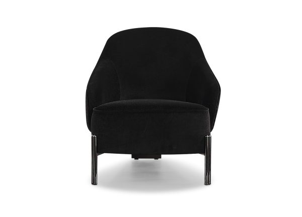 With its generous proportions, enveloping lines and back resting on a sophisticated curved smokey nickel support.