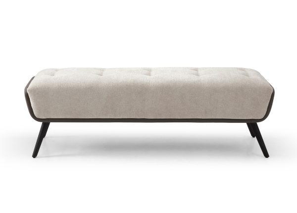 Teddy Bench, Dark Grey Faux Leather, Seat in Beige Fabric, Sanded Black Powder-Coated Steel Legs.
