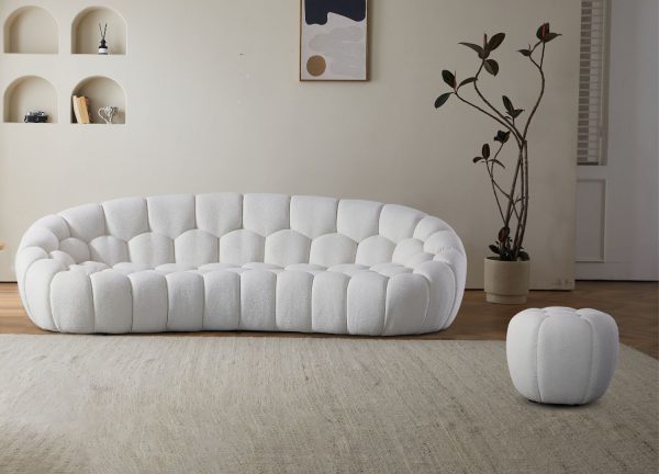 The Nest Ottoman Upholstered in White Boucle Fabric, it defines the harmony of emotion, functionality, and innovation. Its distinctive design makes the Nest Sofa an iconic piece in our collection.