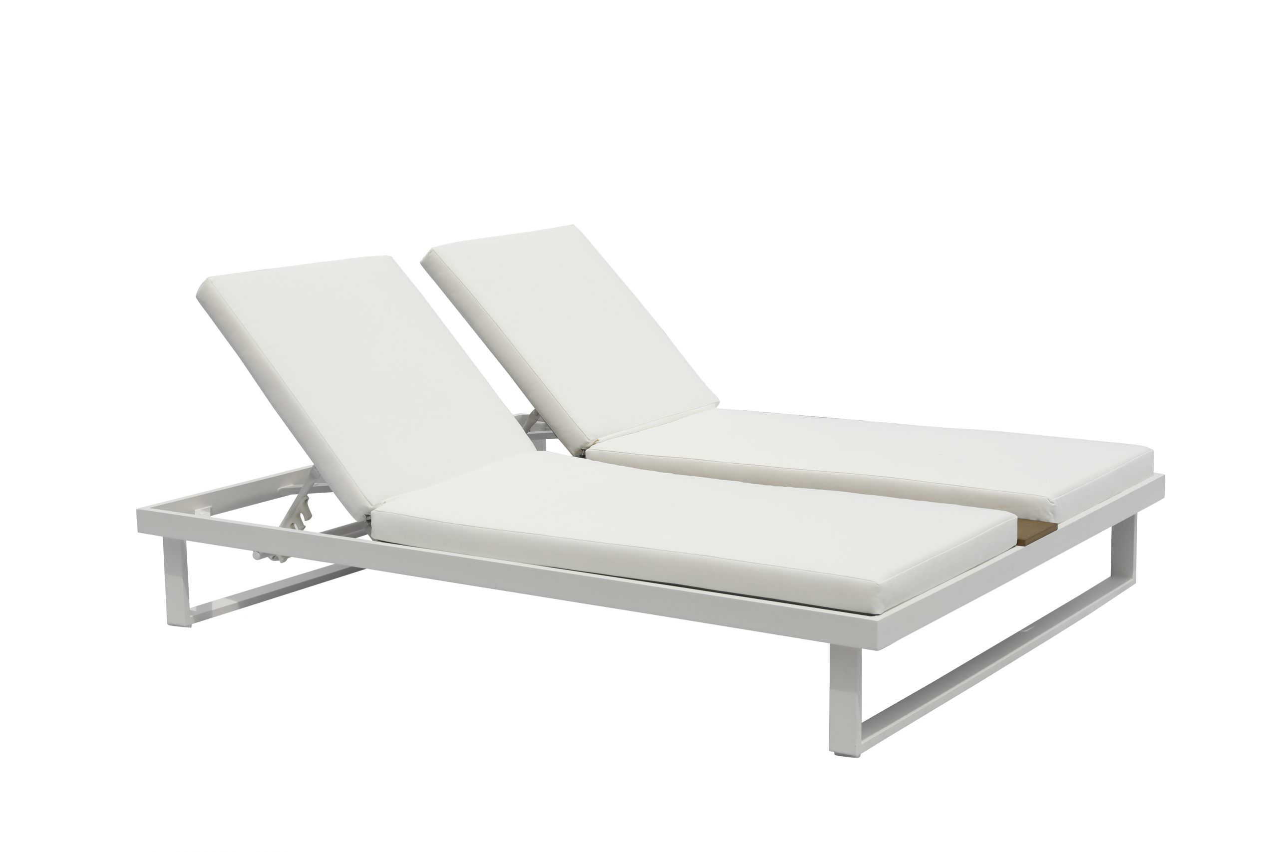 The possibility of making outdoor spaces increasingly more liveable are now ideal with the Sandy double lounge chair with a wood tray, introducing a welcoming and comfortable feel.