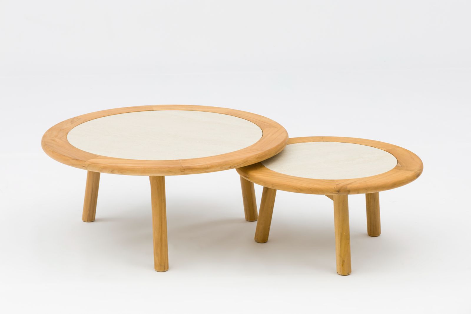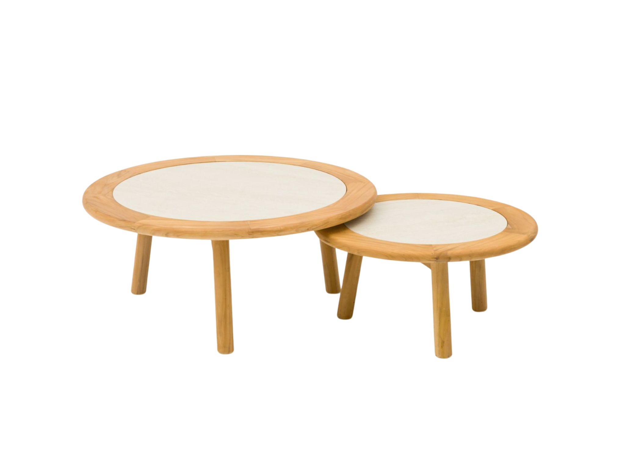 Haven Coffee Table Set, One Small and One Large, Fsc Teak Frame and Legs, With 6mm Beige Ceramic Top