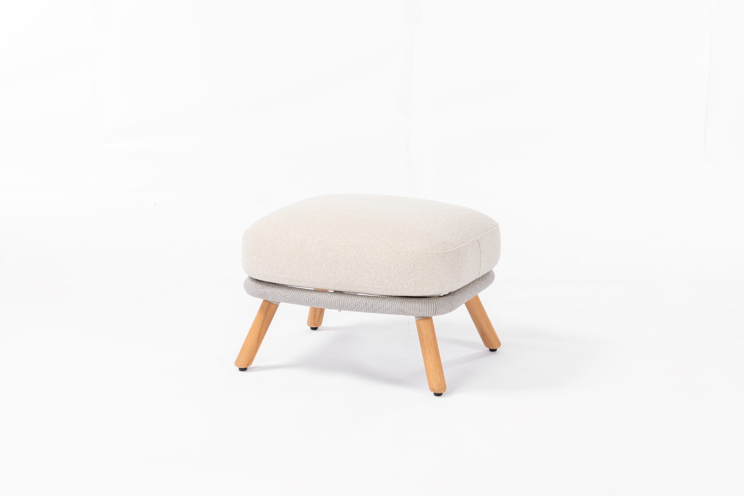 - Aluminum Mocha Frame, Upholstered in Mocha Fabric, 6mm Olefin Mocha Rope Back, With FSC Teak legs, 2 Cushion.