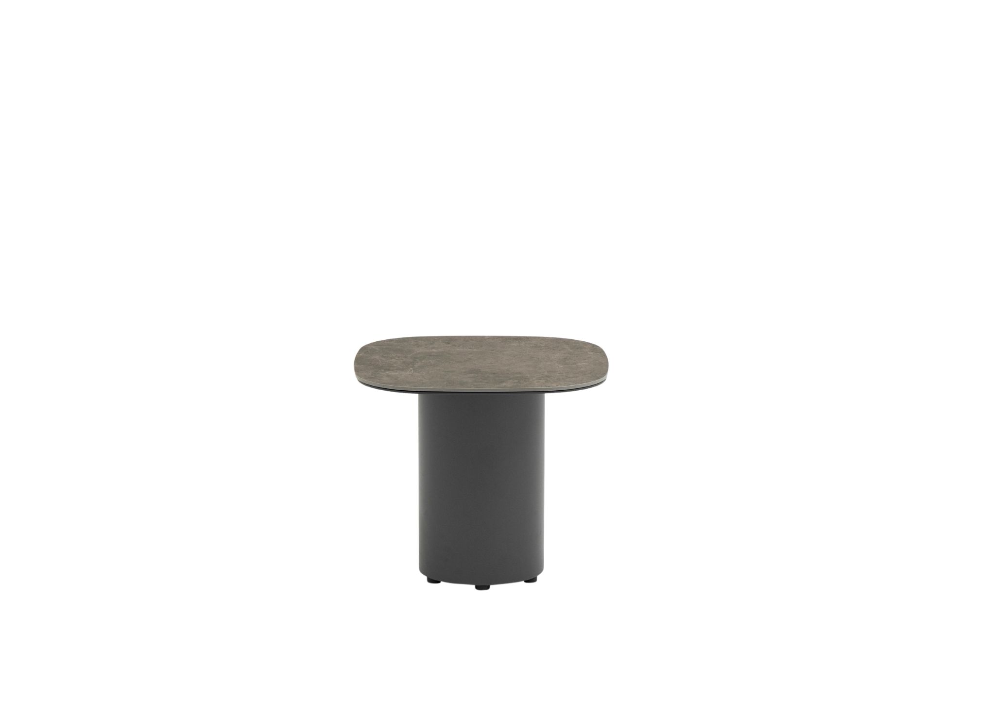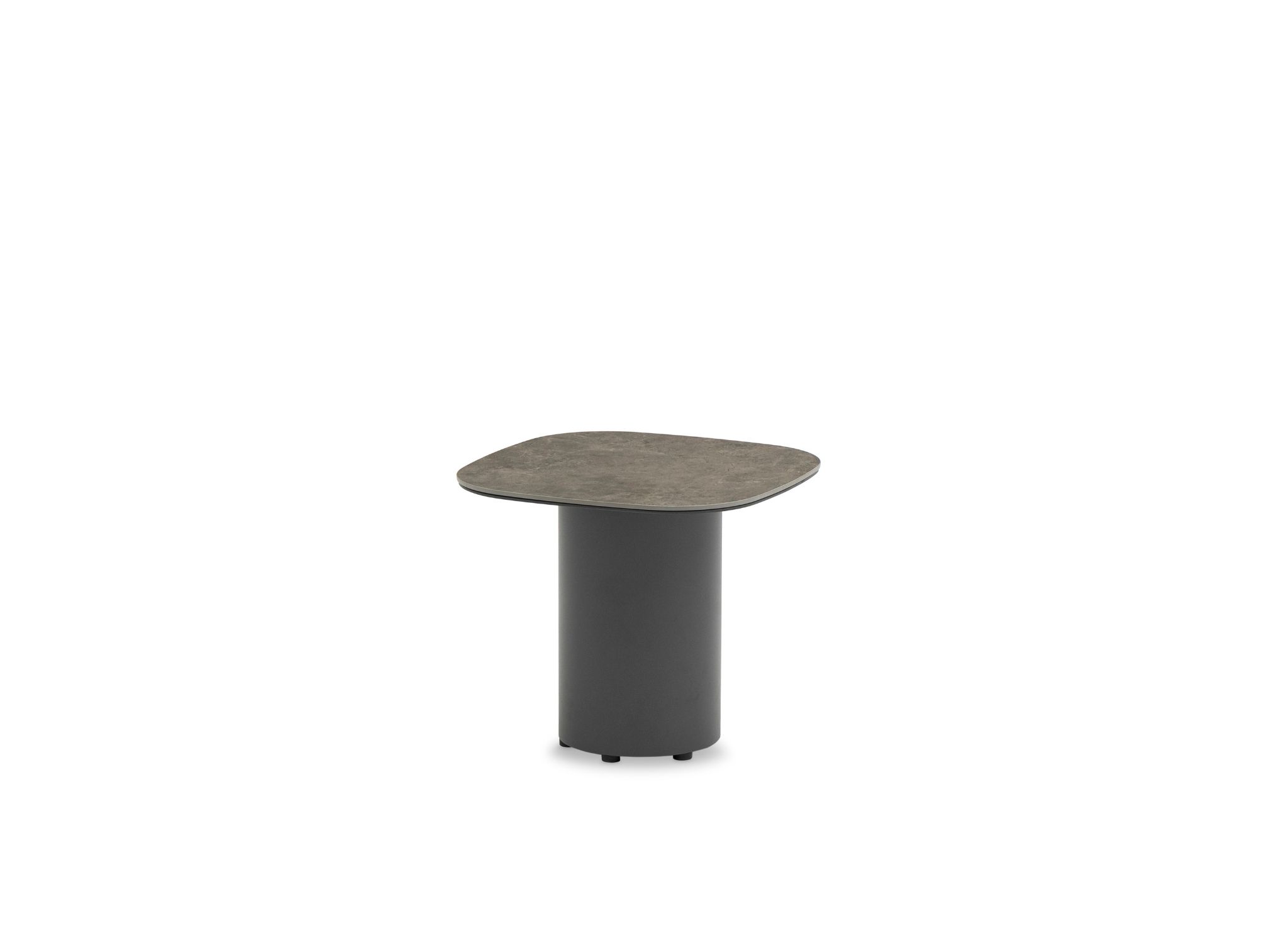 Wave Side Table, Graphite Ceramic Top 6mm, Charcoal Aluminum Frame With 1 Cylindrical base.