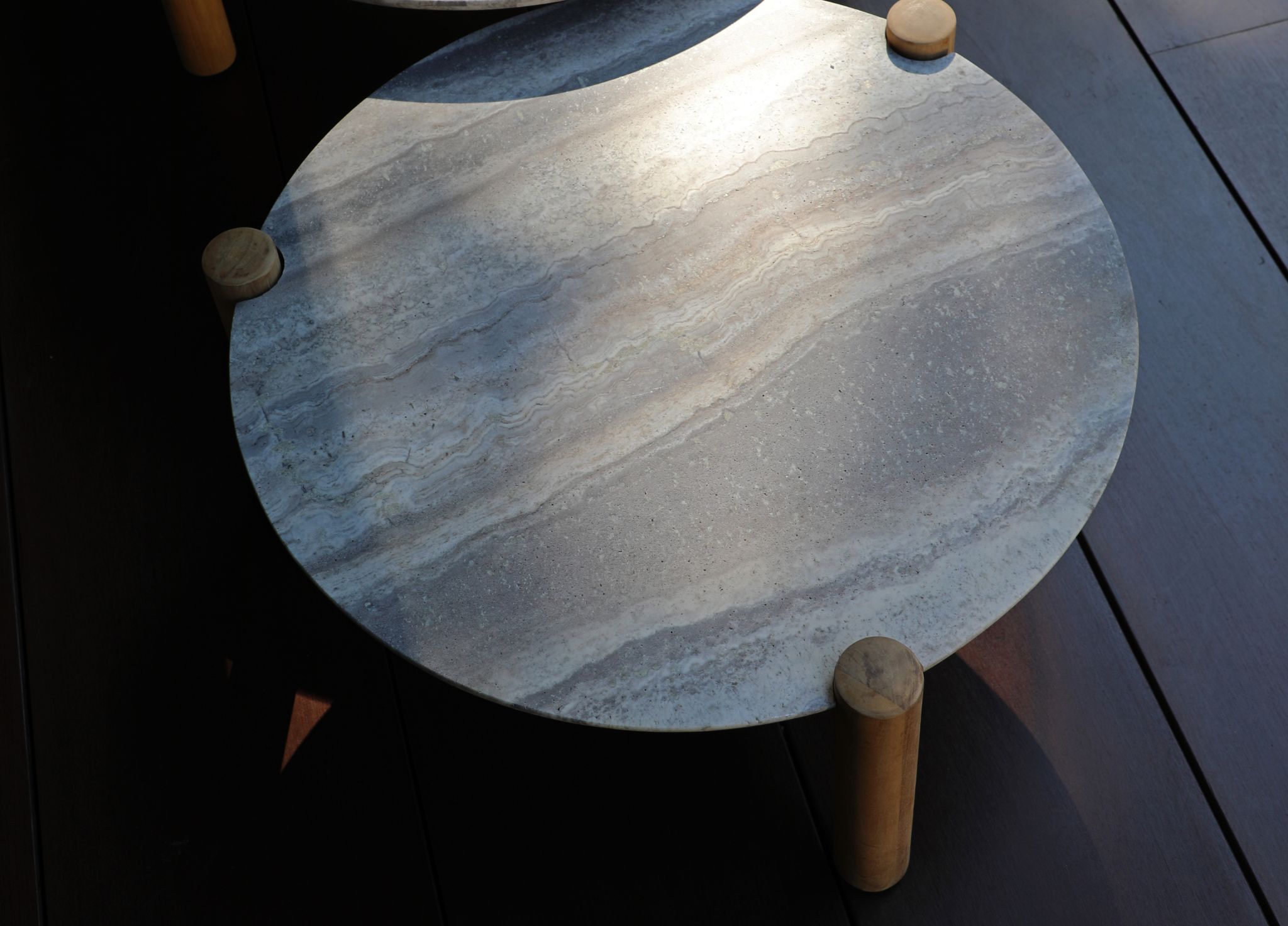 The Orbit side table is minimalism grounded in nature. Its smooth stone surface appears to float effortlessly, highlighting the organic character and subtle textures of travertine. Designed to be admired from every angle, it brings quiet sophistication and balance to any space.