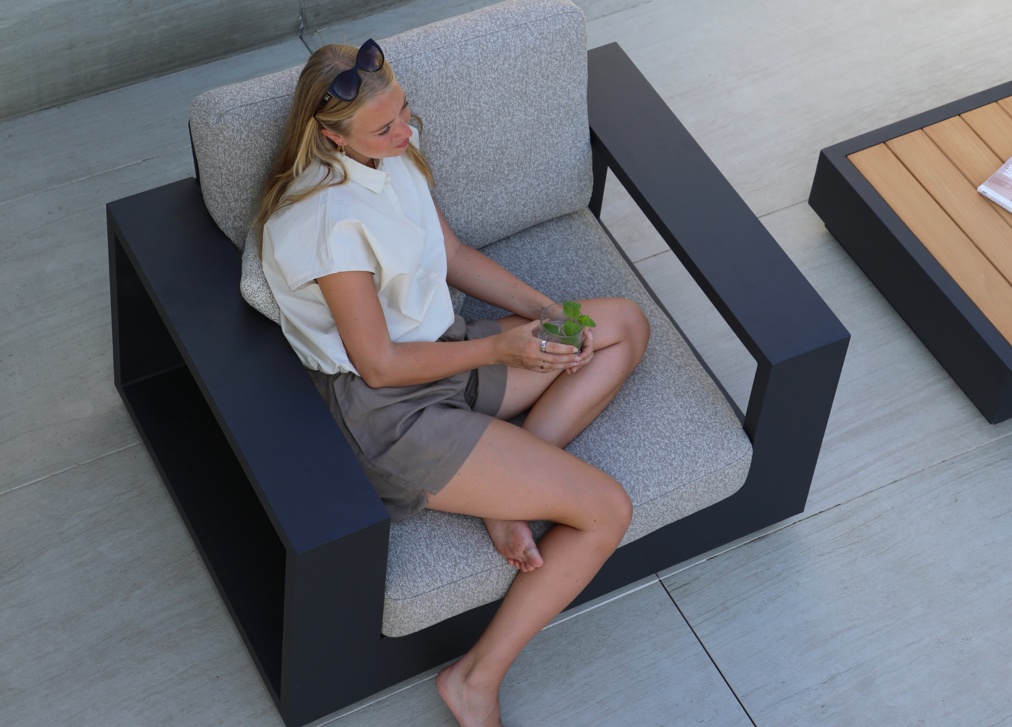Palma Armchair, Charcoal Aluminum Frame, Olefin Rope On Sofa Backrest With 1 pillow.