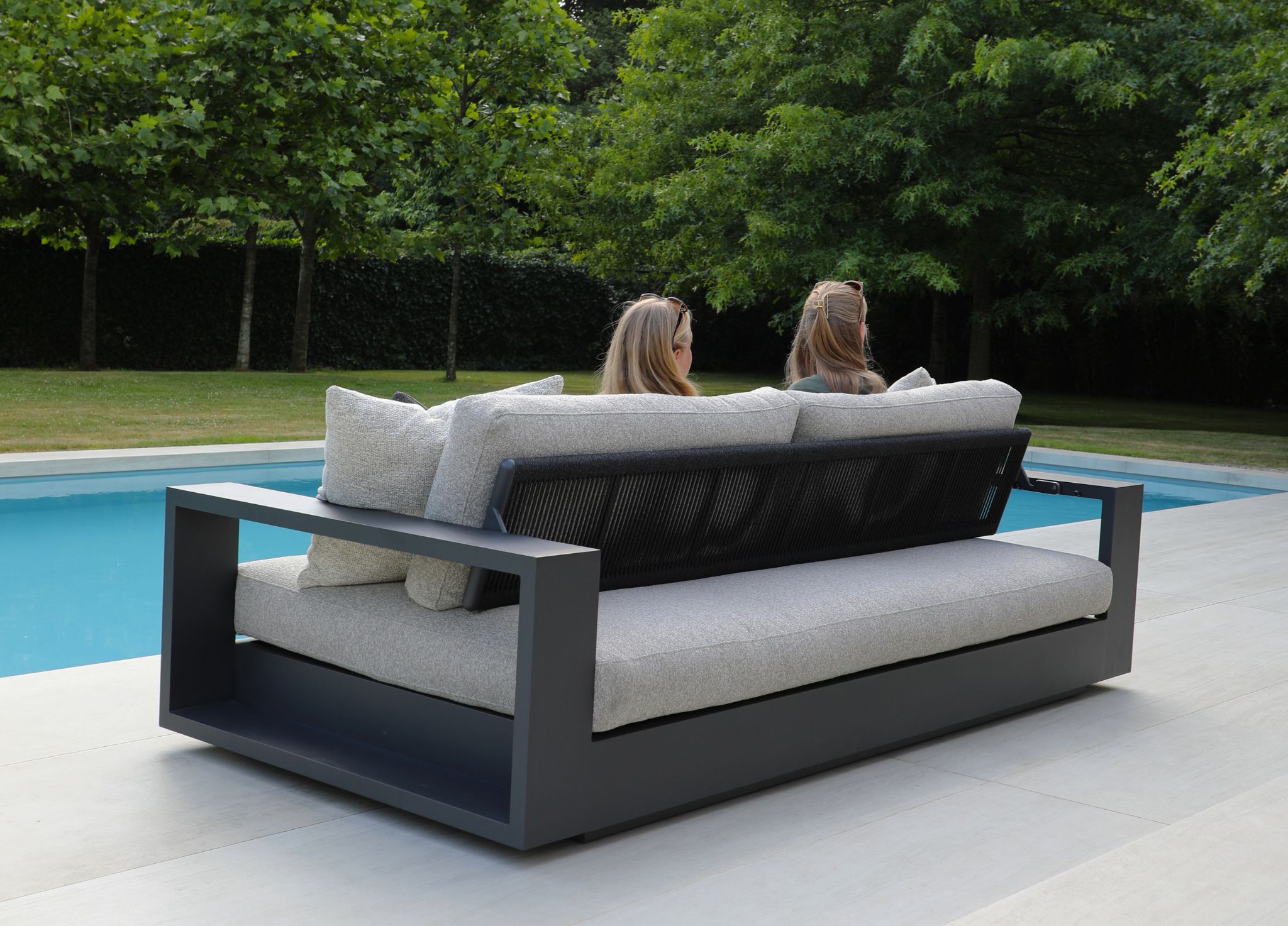Palma Two Seater Sofa, Charcoal Aluminum Frame, Olefin Rope on Sofa Backrest With 1 pillow and 1 Pillows.