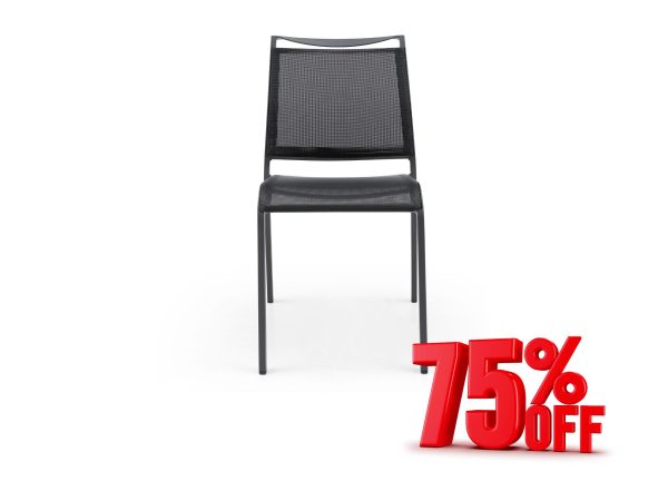 Aloha Indoor/Outdoor Stackable Dining Chair, Dark Grey Aluminum Frame, Seat and Back in Black Textilene.