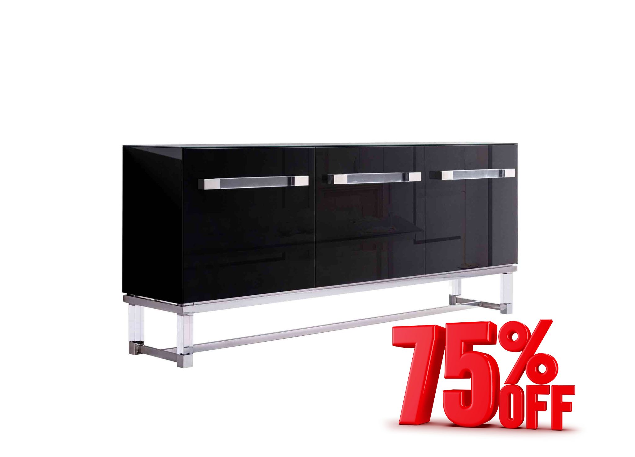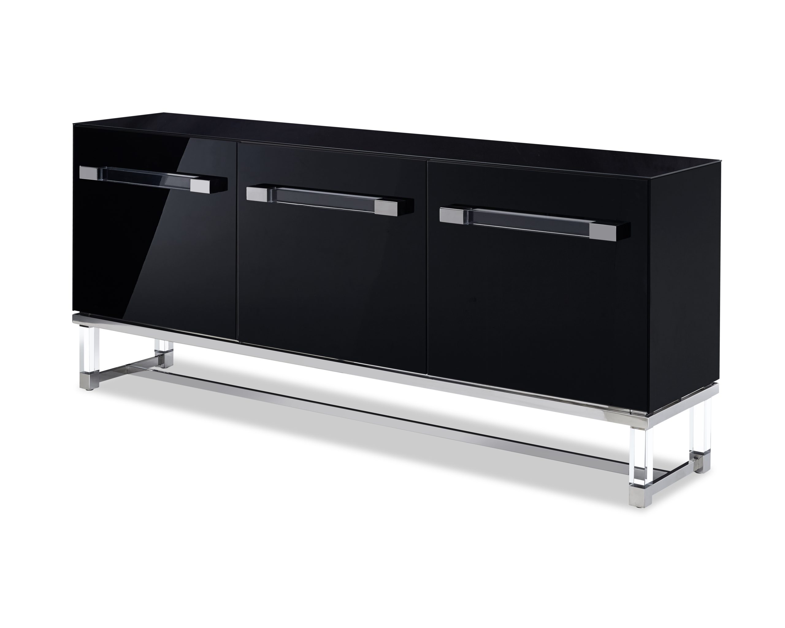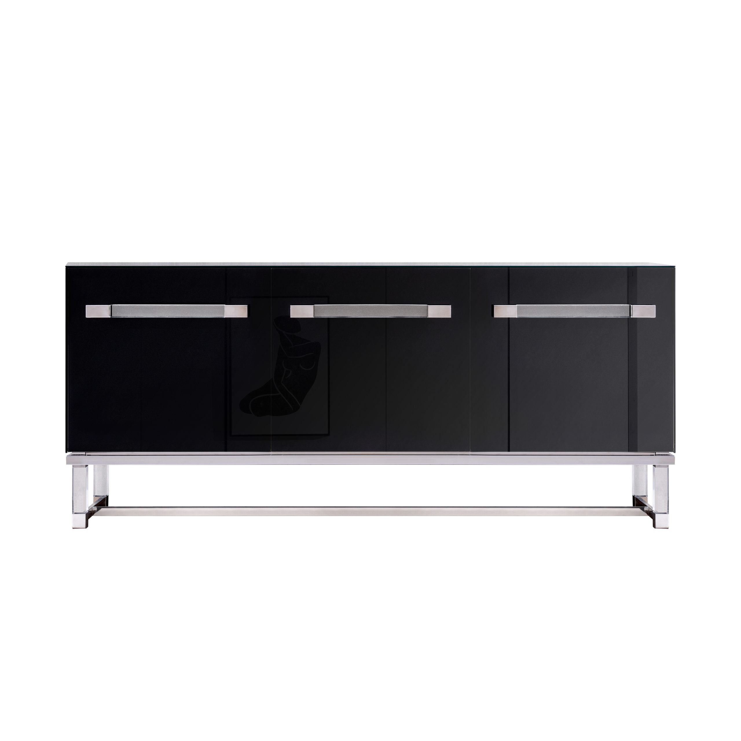 Brianna Buffet, High Gloss Black, Polished Stainless Steel Frame, Acrylic Legs and Handles.
