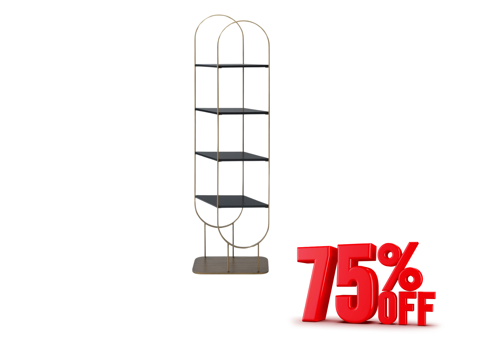 Koda Oval Bookshelf Divider, Brushed Bronze Steel FER-Brushed Bronze, with Black Lacquer Shelves.