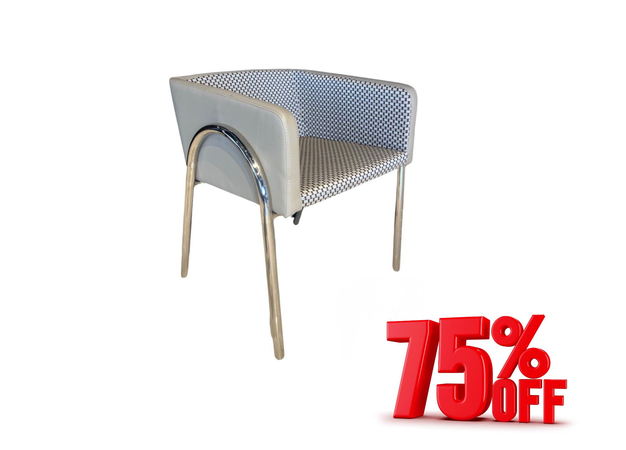 Mandarin Dining Chair, Outside Taupe Faux leather, inside Glory, stainless steel base.