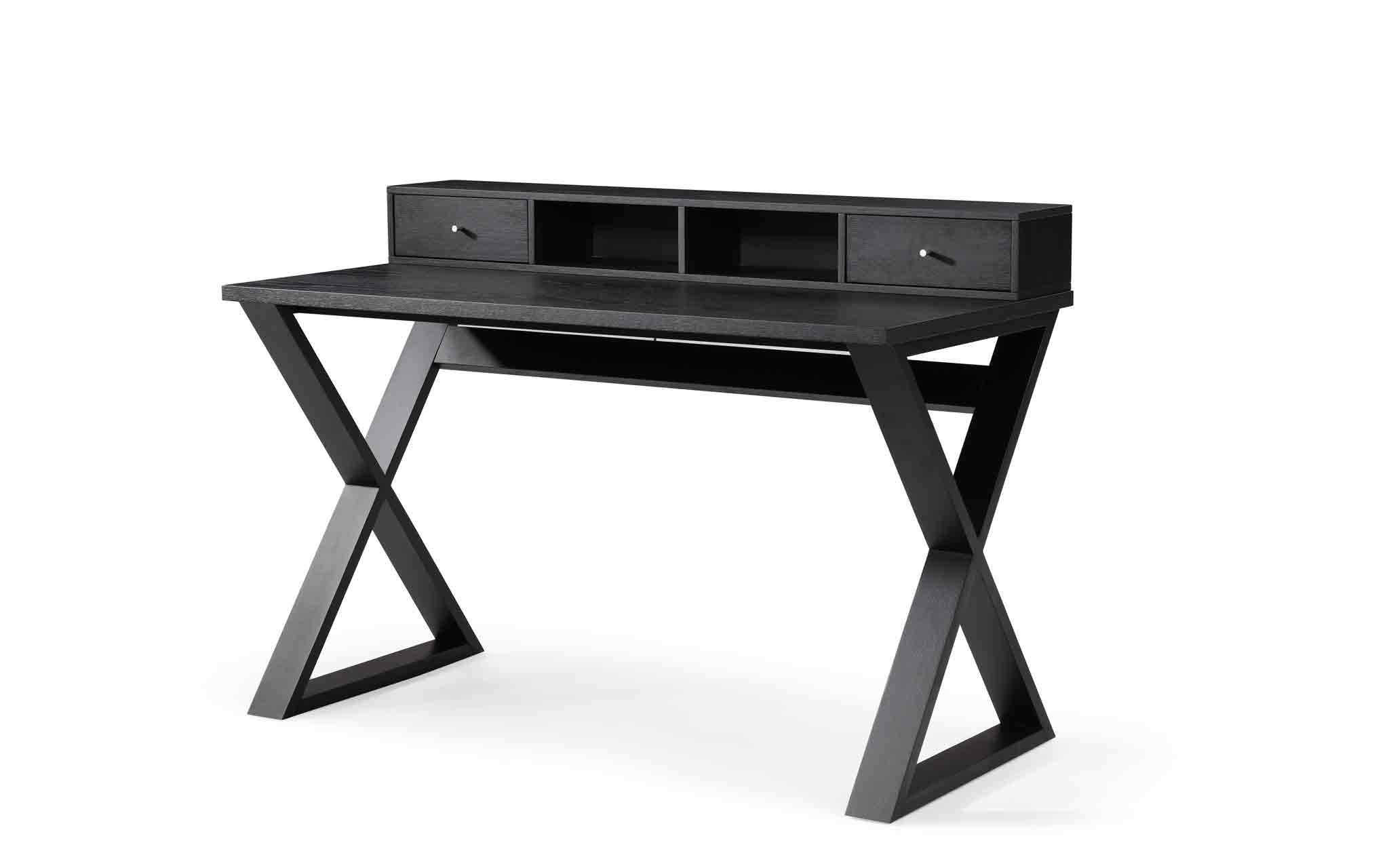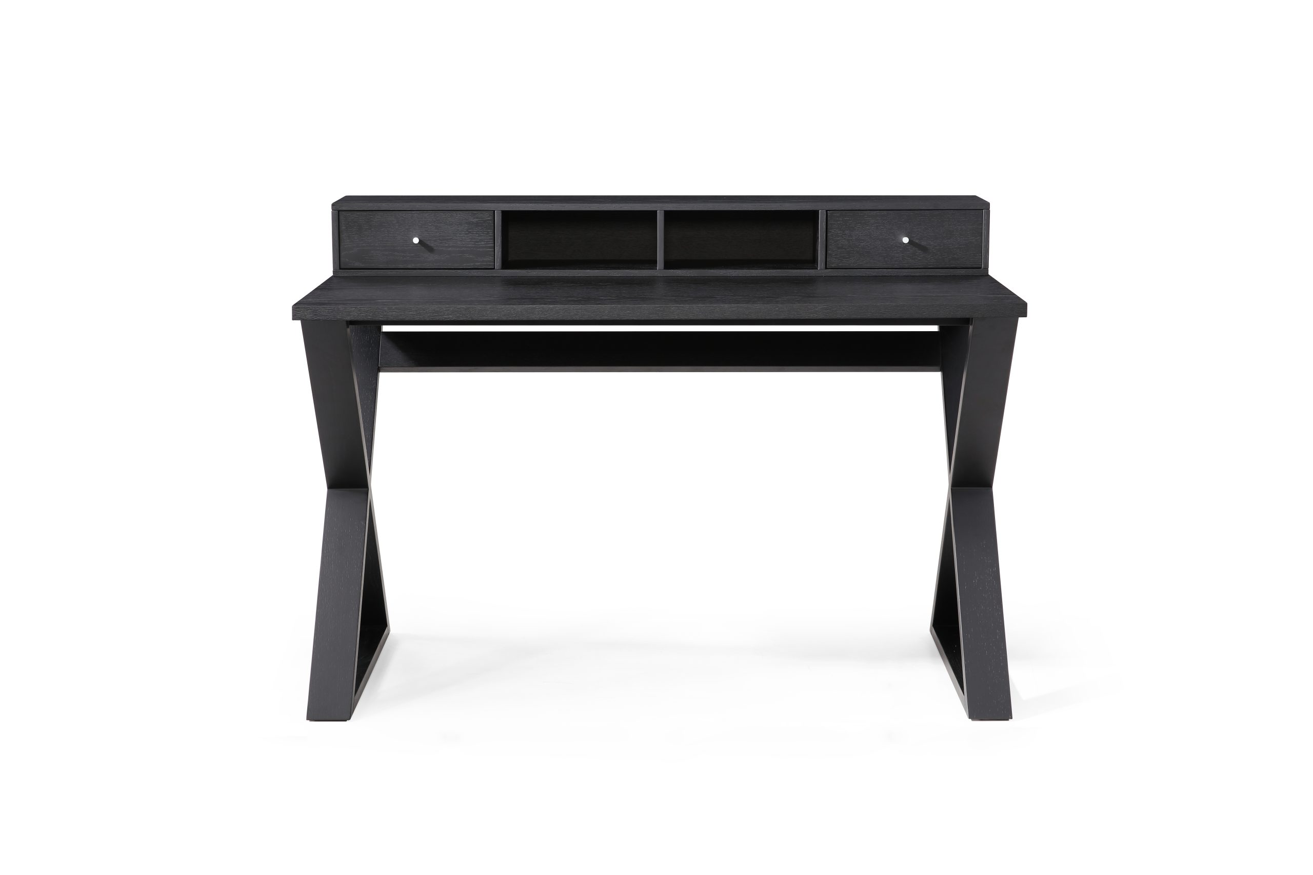 Combine style and practicality with the Michael Desk. Crafted in rich dark Wengee, it features two drawers and two open shelves, offering ample storage and organization for your workspace. The sleek black metal legs provide sturdy support and a modern industrial touch, making this desk perfect for home offices or contemporary workspaces. Functional, elegant, and durable, the Michael Desk brings both design and efficiency to your environment.