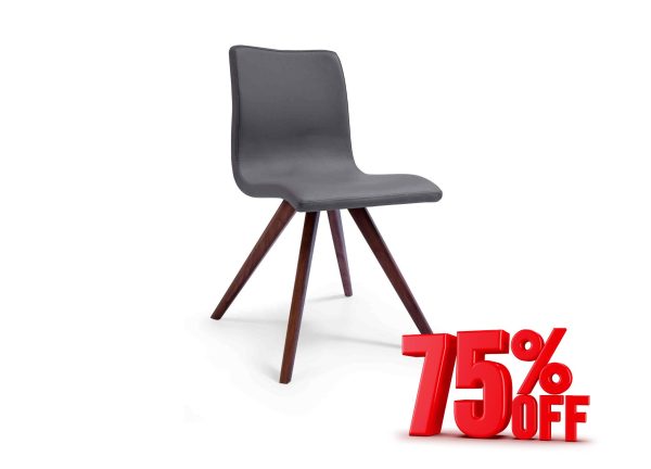 Olga Dining Chair, Grey Faux Leather, with Natural Solid Walnut Legs.