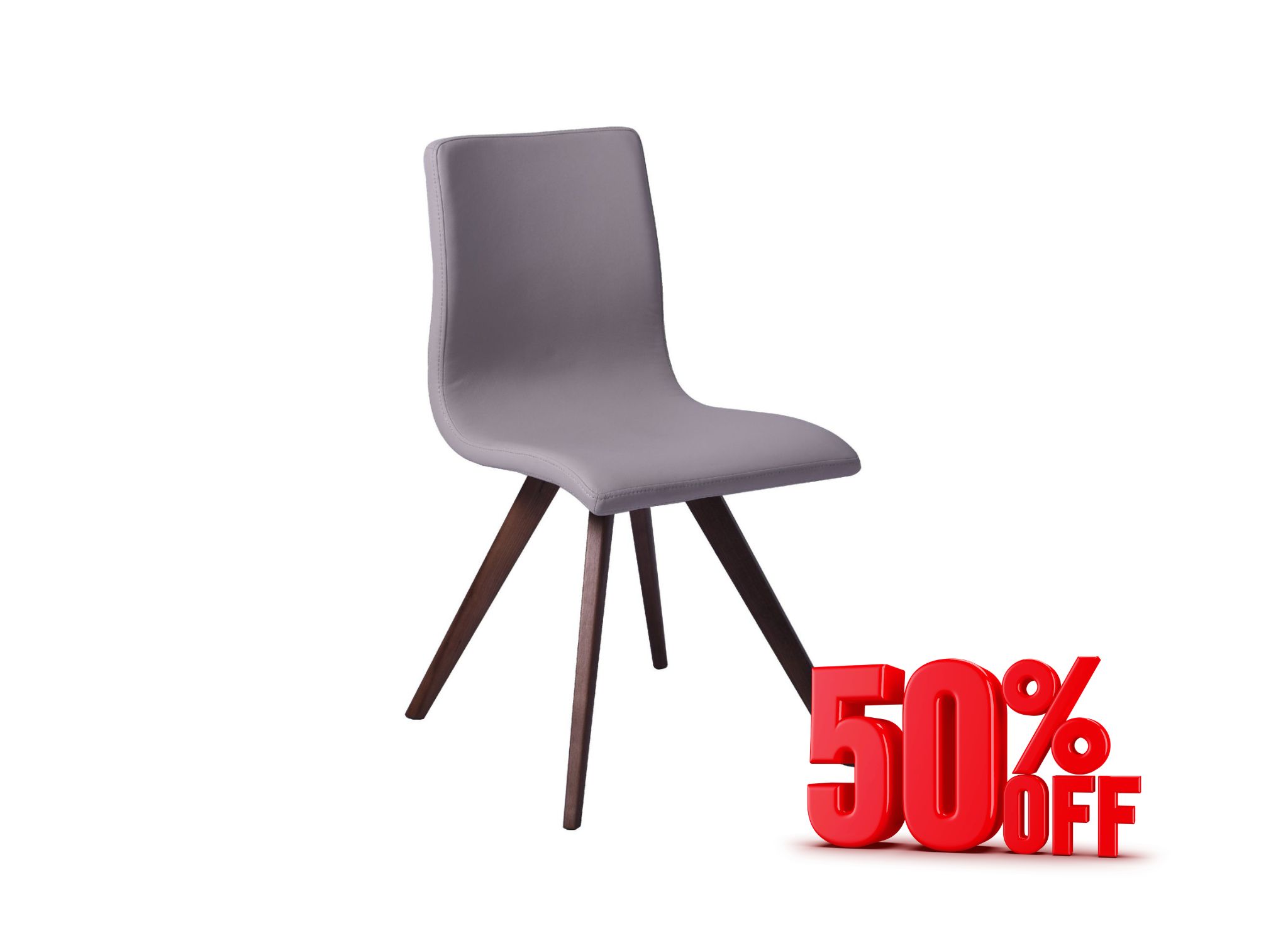 Olga Dining Chair, available in Gray or Taupe Faux Leather, with Natural Solid Walnut Legs.