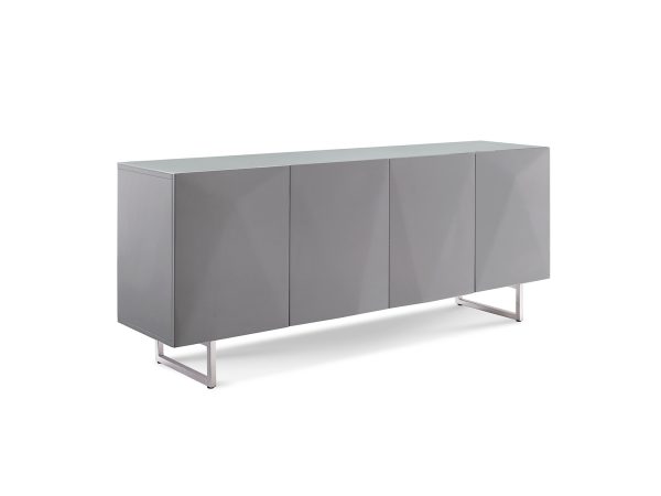 Sleek and sophisticated, the Paul Buffet is a striking statement piece designed for contemporary interiors. Finished in high-gloss grey, its clean lines are elevated by a refined geometric pattern on the cabinet doors, adding depth and visual interest.