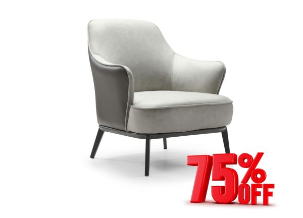 Sunizona Leisure Chair, Front in Waterproof Light Grey Fabric, Back in Dark Grey Faux Leather, Legs in Sanded Black Powder-Coated Steel.