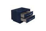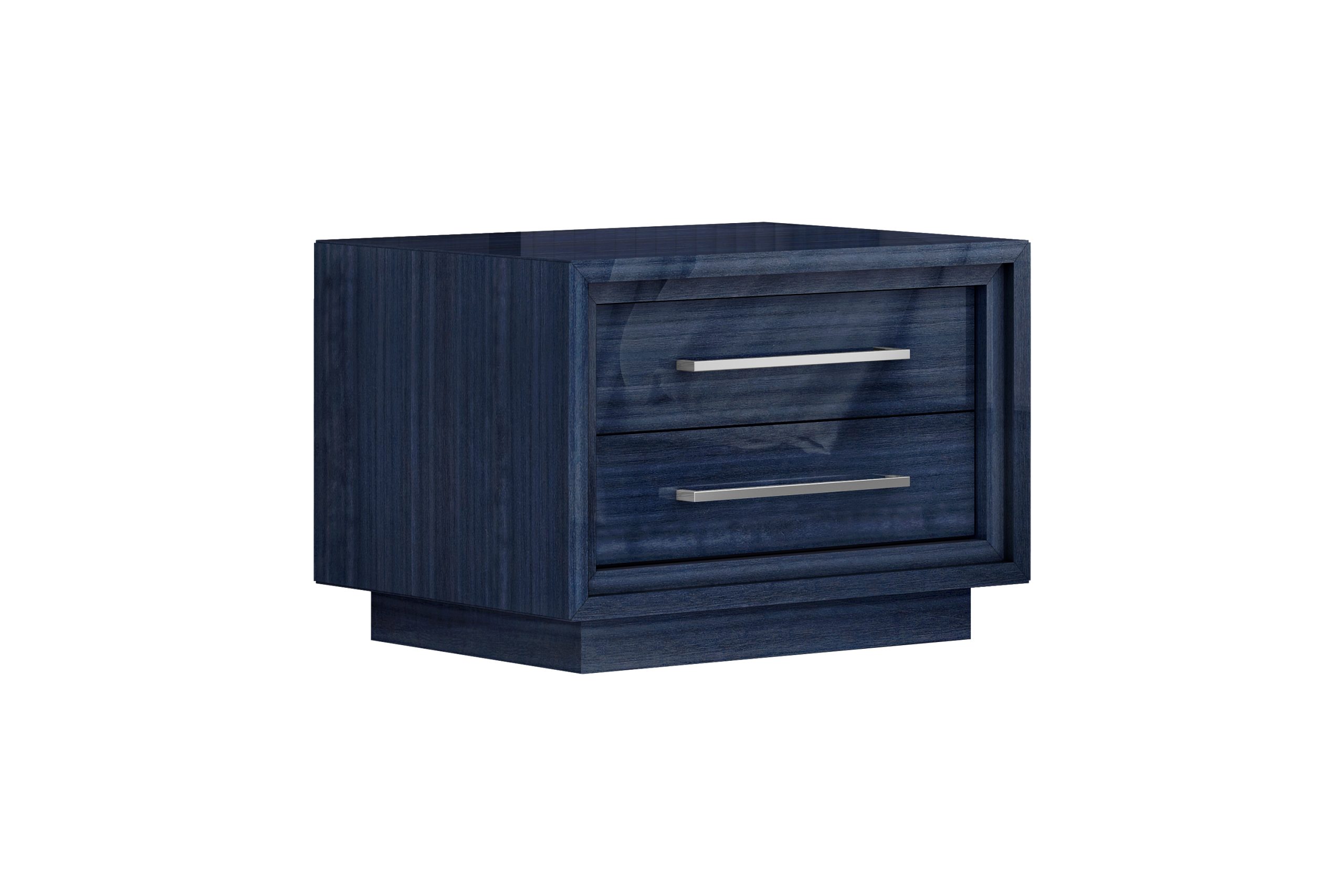 Alexander Nightstand, in High Gloss Sapphire Blue Lacquer, with 2 Self-Closing Drawers and Polished Silver Stainless Steel Handles