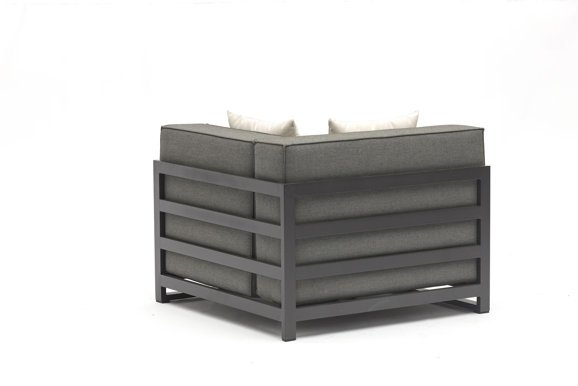 The formal rigour and rational, square aesthetics of the Sensation are balanced by the extreme comfort and softness of the upholstered part,When combined with the other elements in the collection, the value of this seating system as a timeless piece is clear, and thanks to its very strong identity, becomes an icon of outdoor furniture.