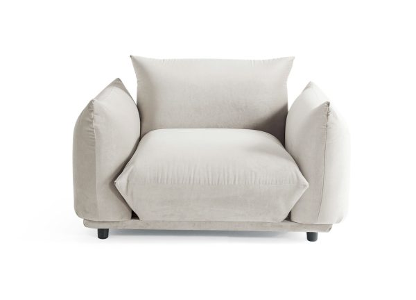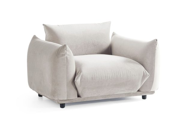 The Solea Armchair brings the same refined elegance and comfort as the signature sofa in a more compact form. Upholstered in smooth white velvet, it features a soft, sculpted silhouette with generous cushioning and gently curved arms, offering a luxurious seat for any space.