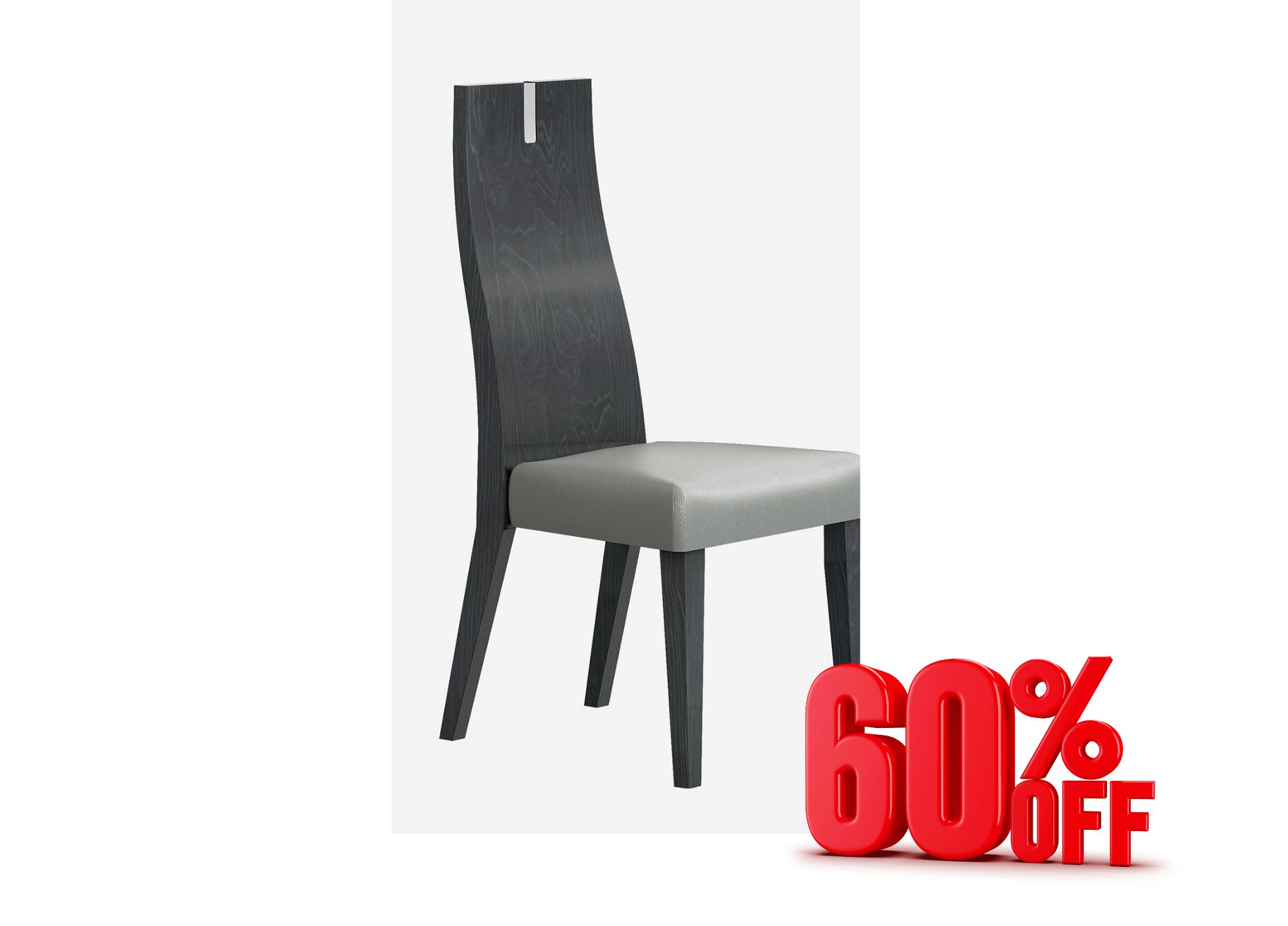 Los Angeles Dining Chair, High Gloss Grey Lacquer, Seat in Grey Faux Leather.