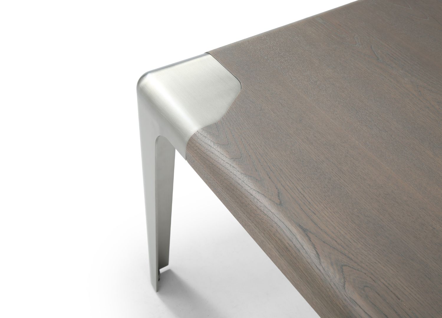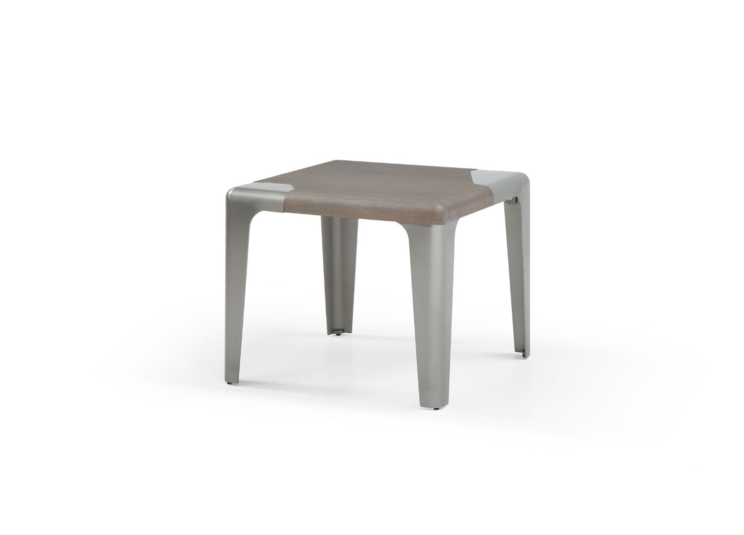 Add a touch of modern elegance with the Elena Side Table, featuring a sophisticated grey ash veneer top and a sleek brushed nickel stainless steel base. A stylish and versatile addition to any room.