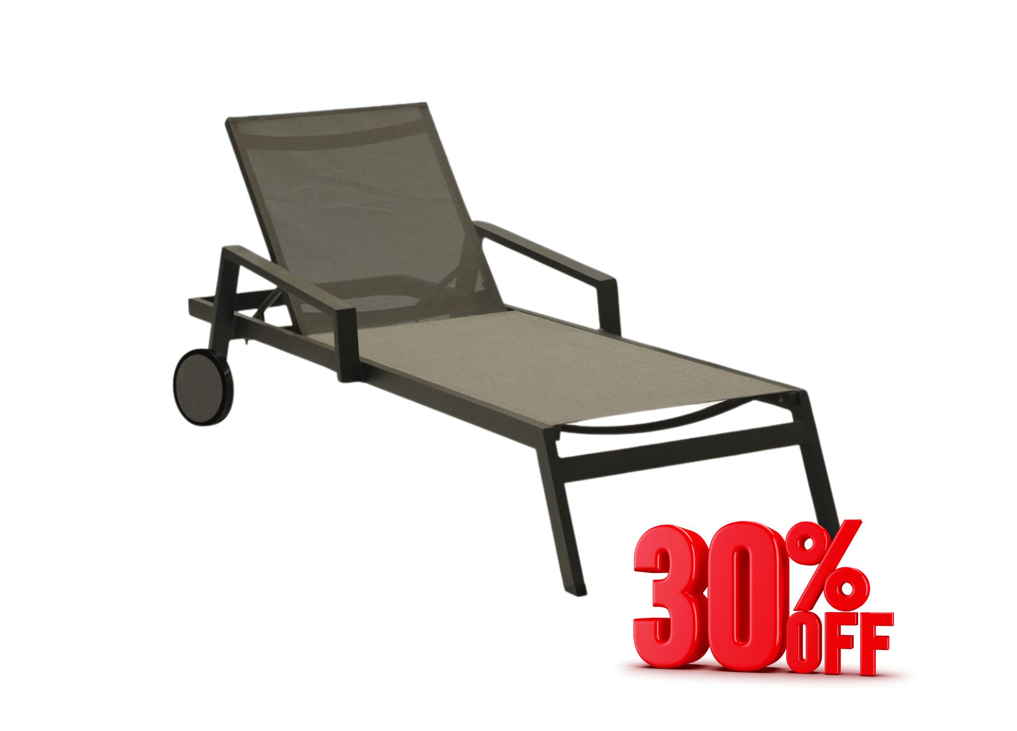 Bondi Outdoor Lounge Chaise, Grey, White or Taupe Aluminum Base with 2 Wheels, Seat and Back in Grey, White or Taupe Textilene.