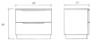 Damien Nightstand, High Gloss White, 2 Drawers with Self-Closing Runners and Silver Stainless Steel Handles.