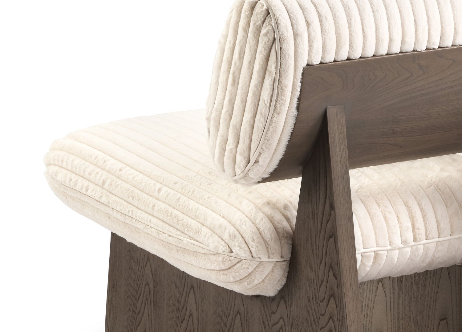 Enhance your decor with the Elena Armless Accent Chair, featuring a sleek wood base covered in light grey elm wood veneer matte and a crisp white fabric seat. A perfect blend of modern elegance and comfort for any room.