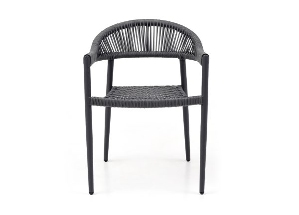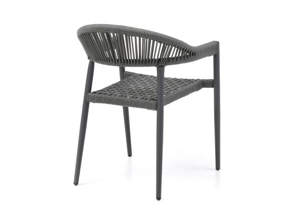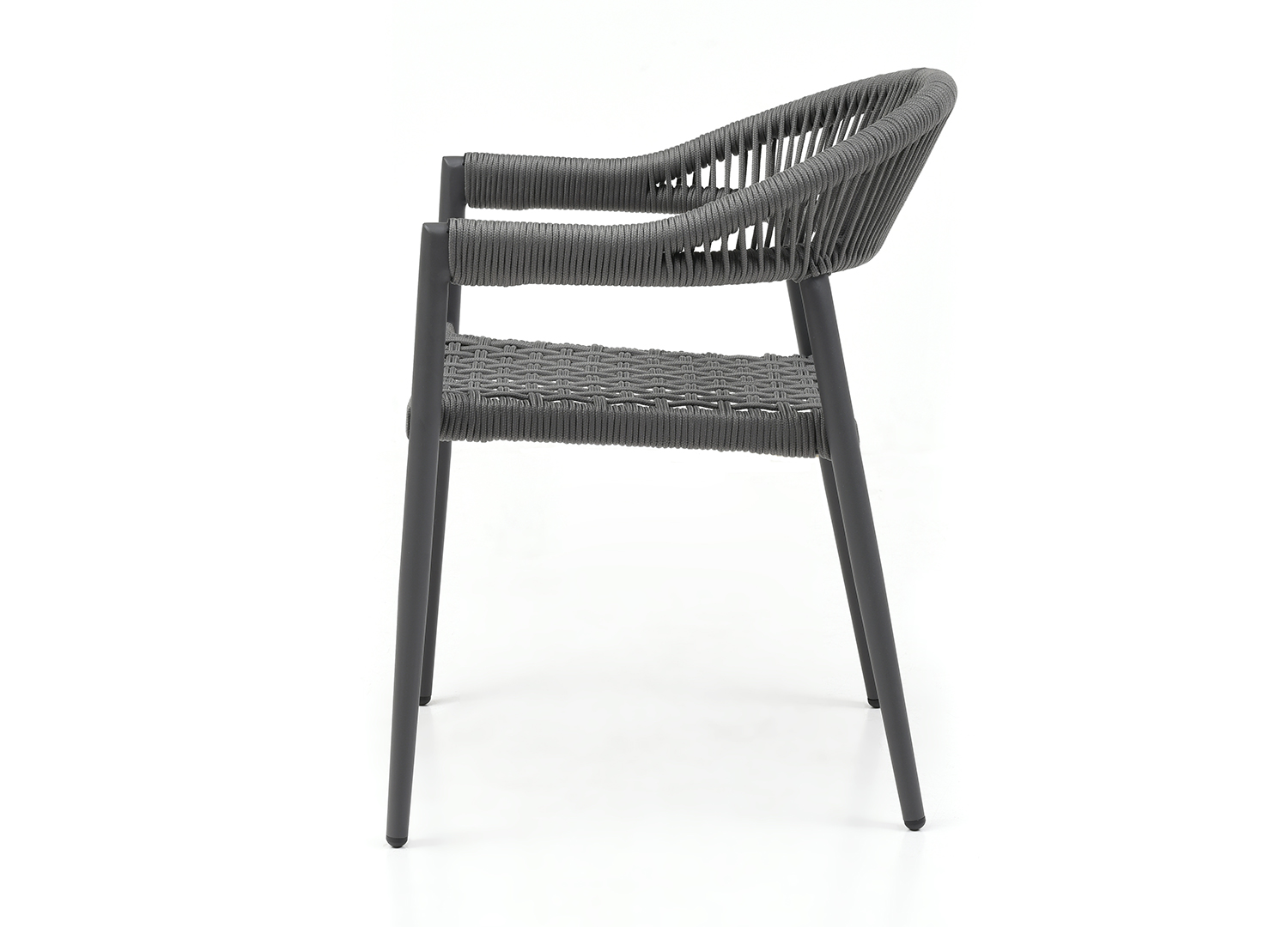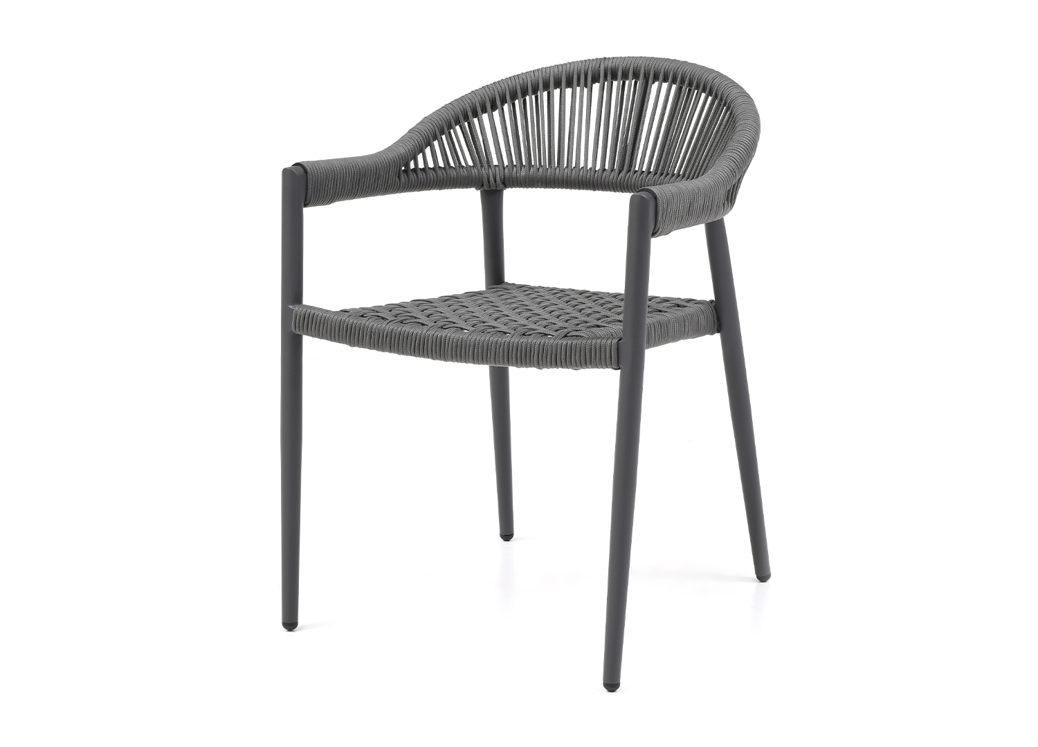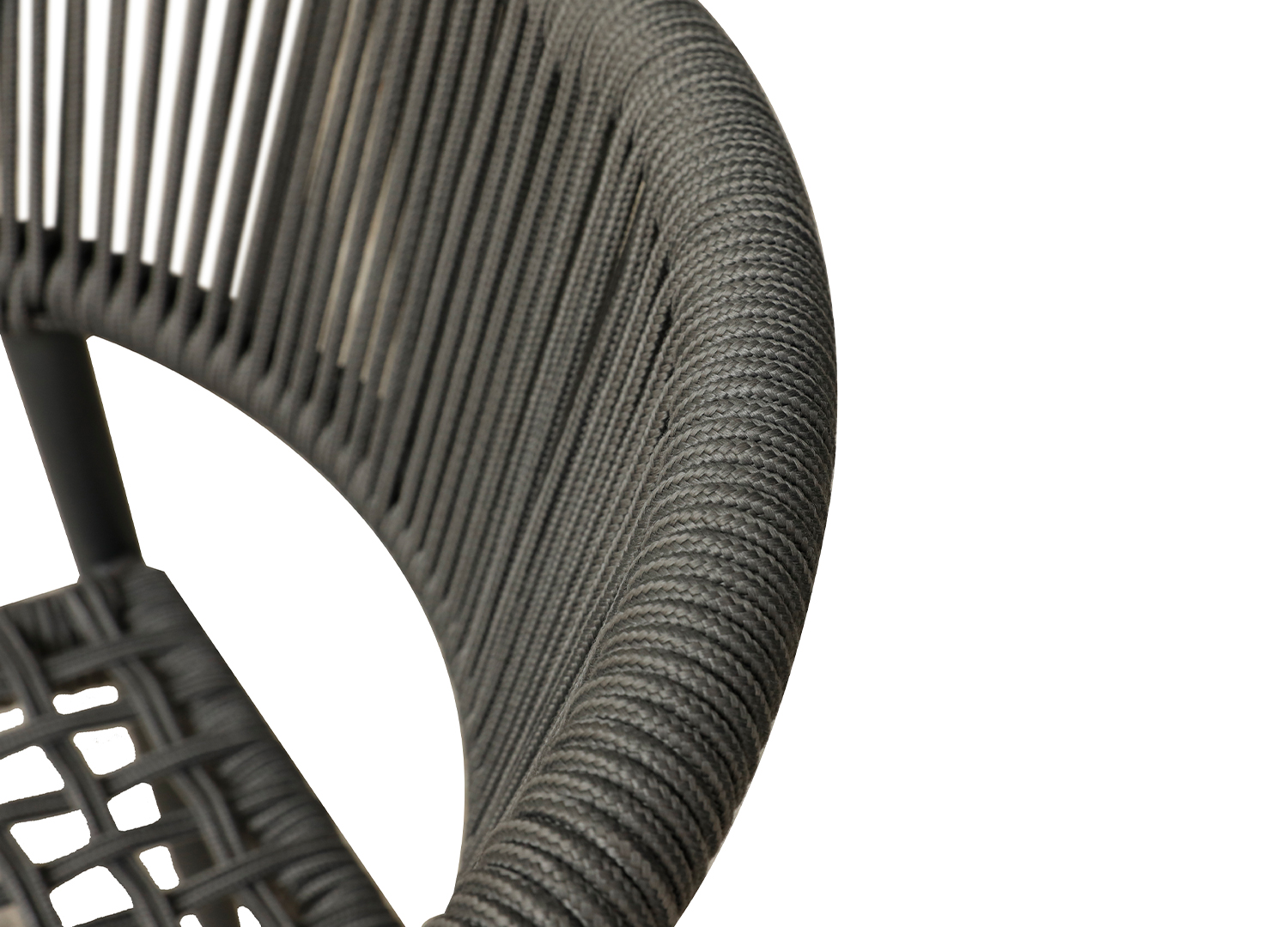 Leyla Indoor/Outdoor Dining Stackable Armchair, in Dark Grey Powder-Coated Aluminum, Seat and Back in Grey Olifen Rope.